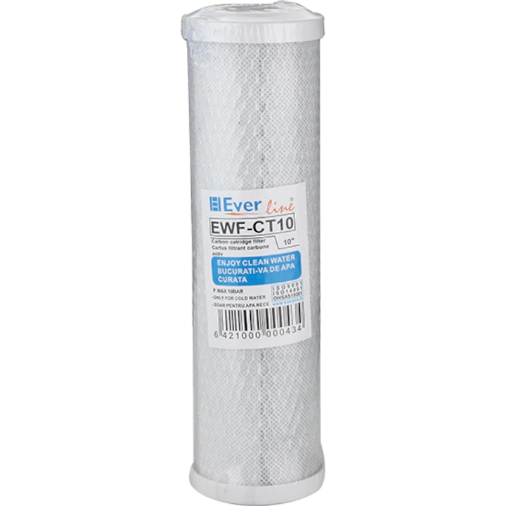 Cartus filtrant carbune activ, este utilizat la filtrarea apei de baut si gatit, elimina clorul din apa corectand astfel gustul si mirosul neplacut. Asigura un grad de filtrare de 5 microni. Se recomanda schimbarea lor la 6 luni.