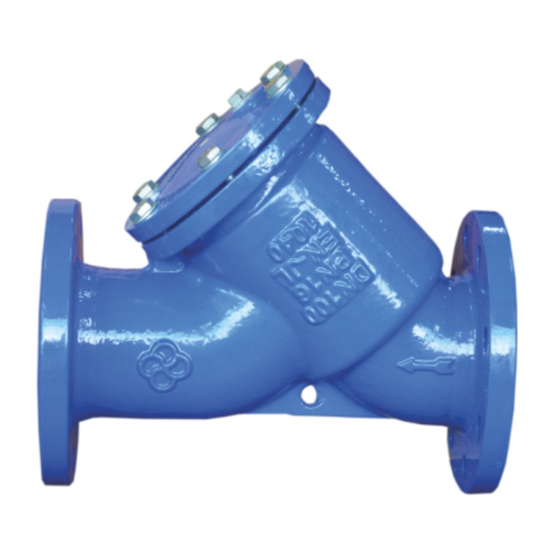 Filtru Y cu flanse. Corp fonta. Sita otel inox. Temperatura de lucru de la -10 °C pana la + 150° C . Presiune maxima de lucru 16 bar. Prindere intre flanse. Fluid: apa potabila si apa industriala. Filtreaza particule solide cu diametrul mai mare de 1.25mm/1.5mm