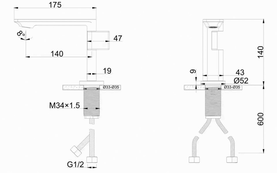 - doua racorduri de alimentare D=1/2 cu armatura de inox;